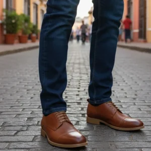 Zapato Vestir Acordonado Cuero Suela Patinado Base Caucho Tabaco