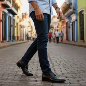 Zapato Vestir Elastico Cuero Negro Base Caucho Negro