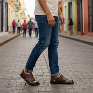 Sandalia Hombre Cuero Marron Liso Base Confort Marron