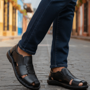 Sandalia Hombre Cuero Negro Liso Base Confort Negro