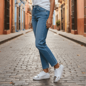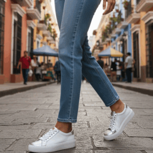 Zapatilla Mujer Cuero Blanco con Plata Base Eva