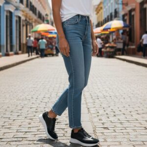 Zapatilla Mujer Cuero Negro con Gamuza Base Crepe