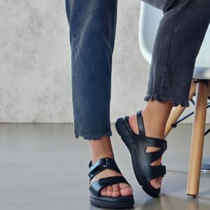 Sandalia Mujer Abrojo Tiras Cuero Negro Base Goma Negra