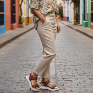Confort Mujer Cuero Taupe con Peltre Base Confort