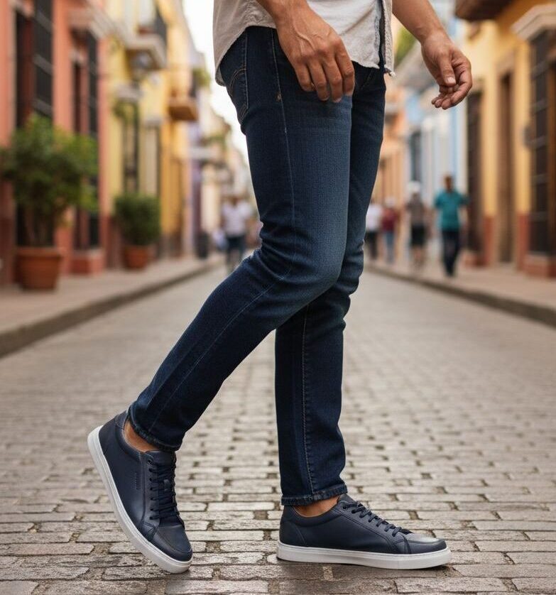 Zapatilla Hombre Cuero Azul Marino Base Eva