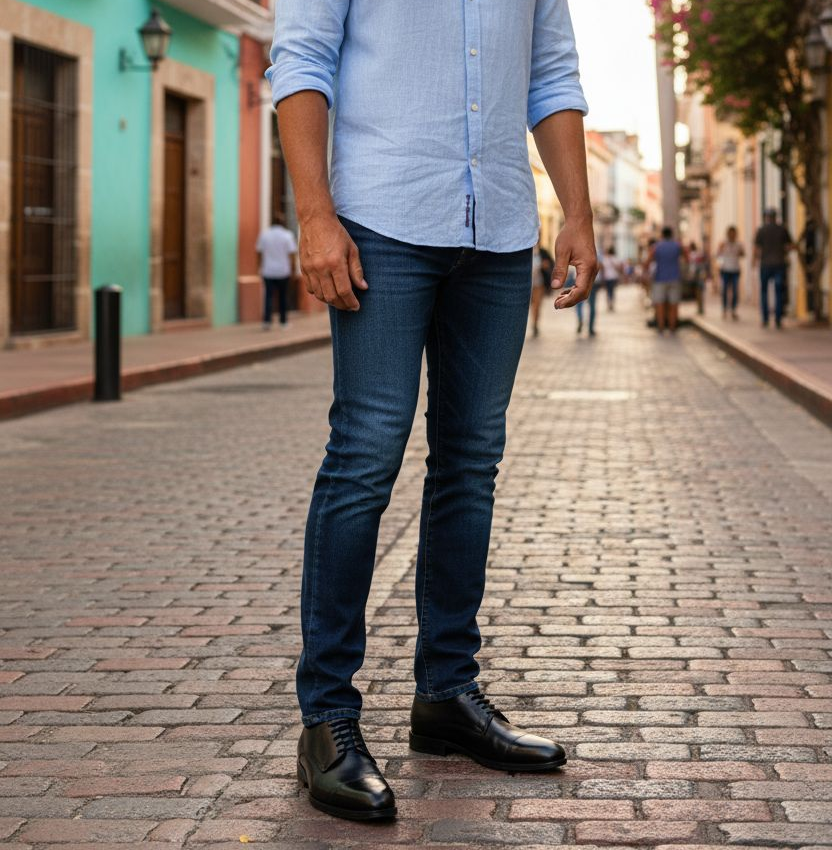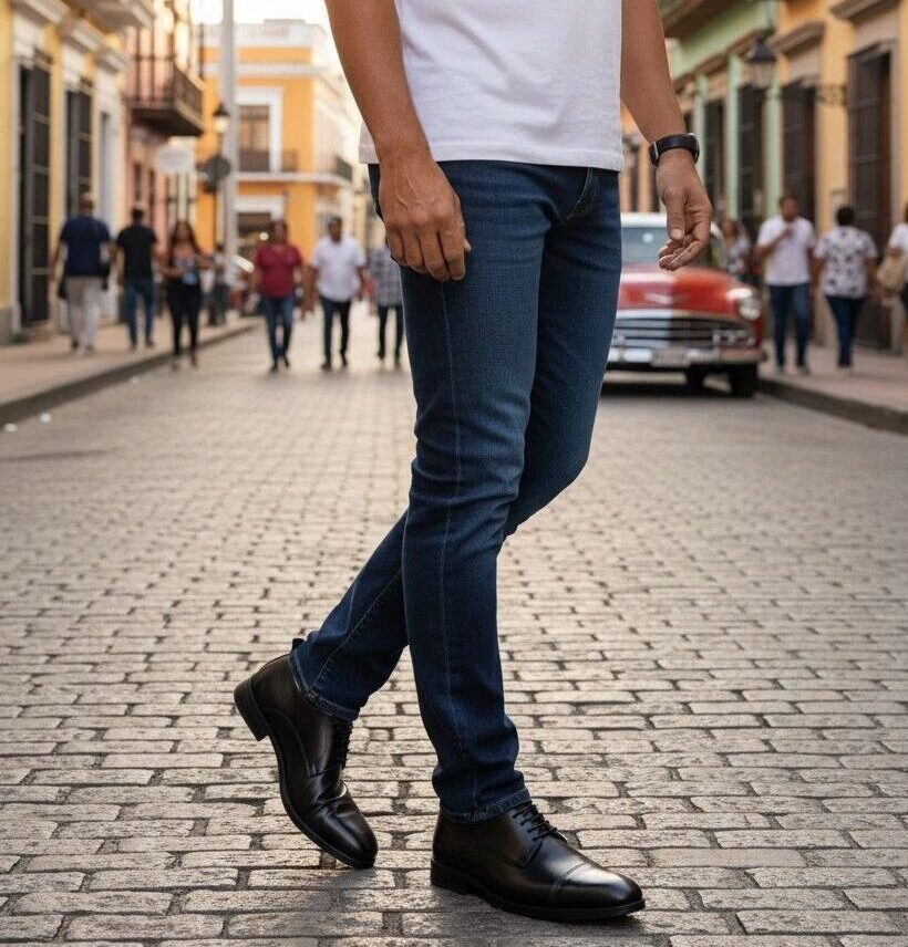 Zapatilla Hombre Cuero Azul Marino Base Eva